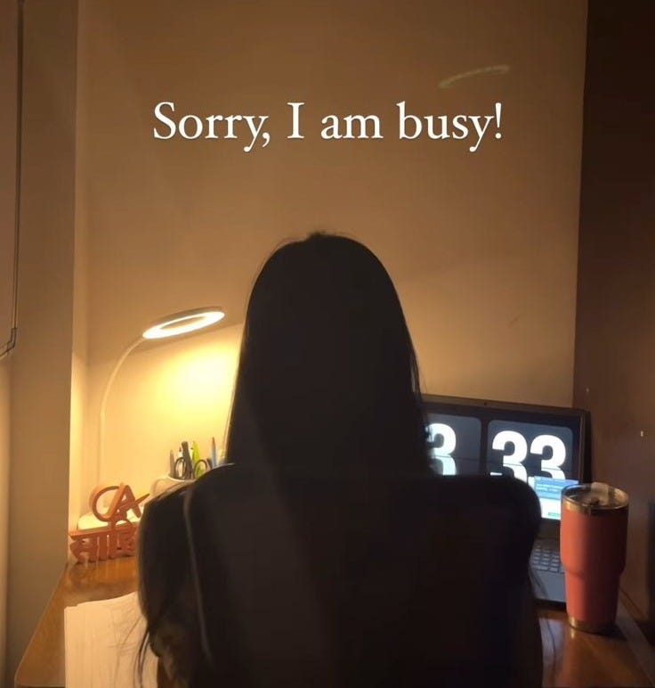 If you’re in your 20s, childless, aren’t anyone’s sole caretaker, and working a 9-5 job, there’s no way you’re that busy.